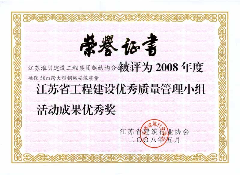2008年省工程建设优秀质量管理小组活动成果优秀奖-确保5