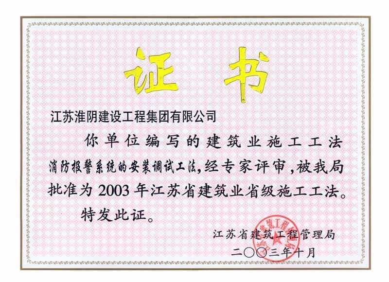 2003年省级施工工法消防报警系统的安装调试工法