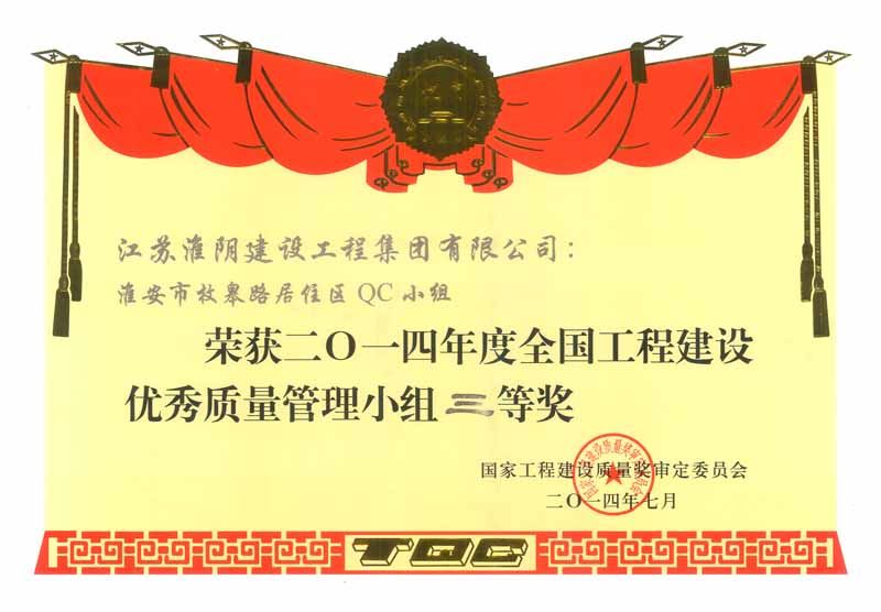 2014年度全国工程建设优秀质量管理小组三等奖淮安市枚皋路居住区QC小组