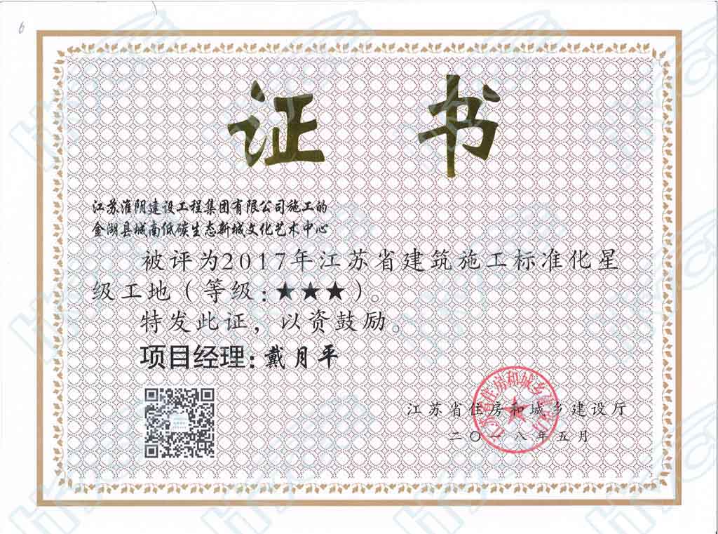 2017年江苏省建筑工程施工标准化星级工地(等级★★★)