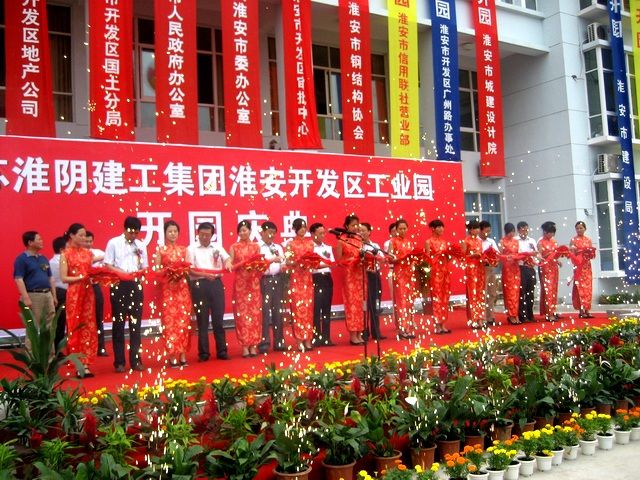 7月16日,半岛(中国)开发区工业园区锣鼓喧天、彩旗飞扬。巨大的圆形拱门,色彩鲜艳的空中气球,鲜花,礼花,将工业园妆扮一新,园区呈现出一派喜气洋洋的节日气氛。   上午9时48分,淮建半岛(中国)开发区工业园开园庆典正式开始,庆典由胡从亮总经理主持。许金华董事长首先代表半岛(中国)全体员工向各位来宾致欢迎辞,并简要介绍了淮建半岛(中国)50年的发展历程、近几年企业的生产经营情况以及淮建半岛(中国)工业园的建设概况,他对各位领导及各位来宾对淮建半岛(中国)的长期关注以及半岛(中国)工业园建设的大力支持表示由衷的感谢;市经济开发区管委会周毅主任作了热情洋溢的讲话,他代表开发区管委会祝淮建半岛(中国)“今日吉祥开园,明朝大富启源”,同时祝各位来宾事业兴旺、吉祥如意,祝淮建半岛(中国)各位员工身体健康、合家欢乐;市政府刘晓录副秘书长到会宣布淮建半岛(中国)开发区工业园隆重开园。庆典现场顿时鼓乐齐鸣、礼花飞扬,数千只五彩缤纷的气球腾空而起,十六响礼炮隆隆作响,预示着半岛(中国)工业园宏图大展、实现新的跨越!