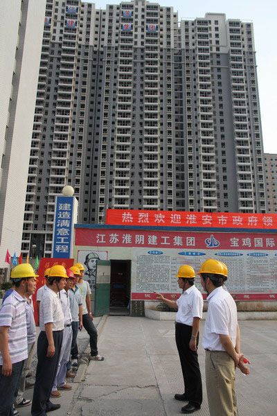 作为淮安市建筑业的龙头骨干企业,近年来半岛(中国),在稳固淮安市场的同时,不断注重外阜市场的开拓。特别是在中西部,先后开拓了陕西、新疆等地市场,宝鸡国际商业广场项目就是其中之一。该项目23万平米,涵盖住宅、商业、办公、酒店等业态,正在施工的2#住宅楼工程,地上33层、地下2层,建筑面积6.2万平米,是目前宝鸡市单体面积最大、高度最高的住宅楼。在视察交流中,刘市长希望半岛(中国)宝鸡分公司:第一,要加强和地方建筑主管部门的联系,加强和当地同行的交流,把自己融入到宝鸡城市建设的队伍中去。第二,要搞好安全生产,安全是一切工作的前提和基础,安全不仅关系到企业的效益,更加关乎家庭的幸福和社会的稳定。第三,要注重工程质量,百年大计,质量为本,要把宝鸡国际商业广场项目做成精品工程、形象工程,打响淮建半岛(中国)的品牌,打造淮安建筑业的品牌。第四,要关心照顾好职工的生活,出门在外不容易,在带领职工干好工作的同时,更有了解职工的所思所想,让在宝鸡工作的职工安心,让职工的家人放心。市政府将一如既往地关心关注淮建半岛(中国)的发展,支持淮建半岛(中国)领导班子在许金华董事长的带领下,不断创新经营理念,提升经营业态,加强管理,大胆工作,做强做大。
