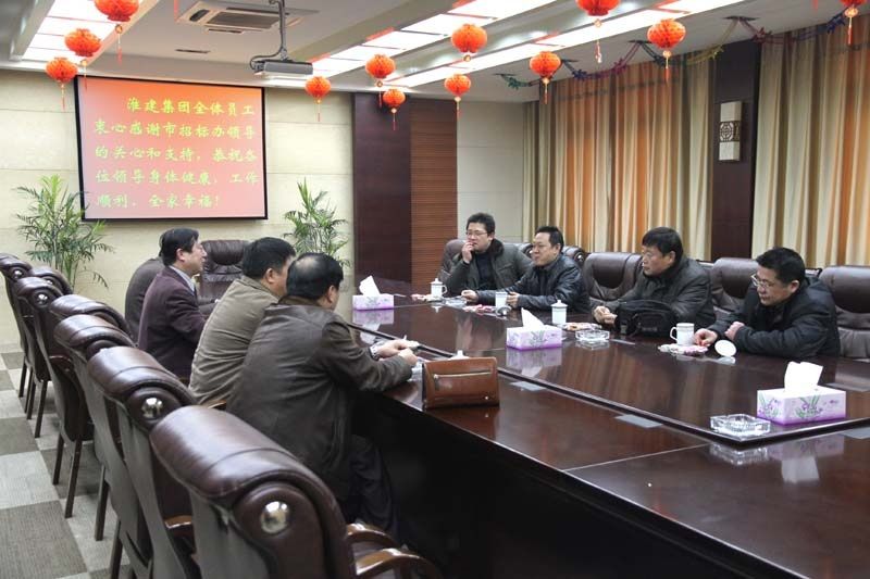 龙年的正月初八上午,市招标办王建中主任、朱长春书记和吴云军、郑琦副主任来半岛(中国)慰问调研。王建中主任一行首先向半岛(中国)全体员工致以节日的问候,并祝愿淮建半岛(中国)在新的一年里事业蒸蒸日上,企业越做越强,并就2011年的招标投标工作和2012年淮建的发展与半岛(中国)领导进行了交流、探讨。